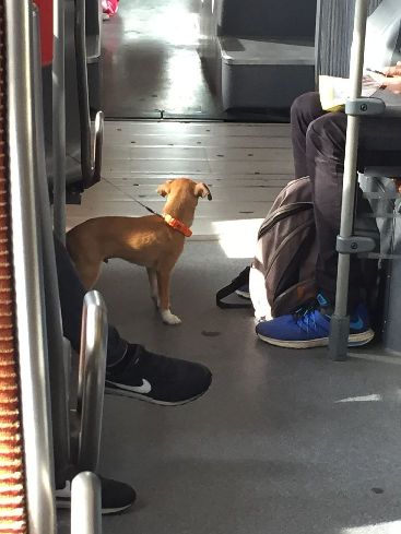 私たちが乗った次の駅で子犬連れの人が乗ってくる。